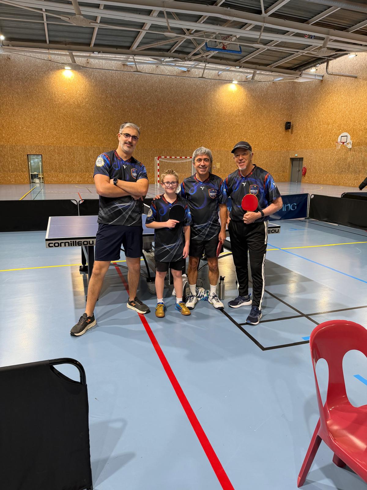 🔥 Le mot du capitaine Dominique : “Équipe 3: victoire 8 à 6. Bonne ambiance saine de chaude camaraderie car la température de la salle était quant à elle plutôt frileuse 🥶 Les premières rencontres ont été difficiles pour les anciens, les vieux diesel sont toujours longs à chauffer, Jean-Philippe s’incline sur la jeune Fortuny ( Melyssa ), et Dom sur David Robert, Patrice sur Christophe Chatail, notre nouvelle recrue de compétition Geoffrey ne laisse peu d’espoir à ses adversaires et remporte ses trois simples et le double avec Patrice, Jean Philippe bat la seconde féminine et Geoffrey la jeune Fortuny, Dom remporte sa rencontre contre Christophe ( en usant le filet ) et nous voilà à 4 partout avant les doubles, pas si facile… Un double sur deux de gagné et nous nous retrouvons de nouveau à égalité 6 partout. Dom use de nouveau le filet sur la jeune Fortuny , Patrice se défait de l’autre féminine et comme Geoffrey fait carton plein nous emportons cette rencontre 8 à 6 ! Merci à mes collègues d’être venus car sans eux je n’y serais pas arrivé ! Matinée satisfaisante pour notre petite équipe et un plus pour Geoffrey 👍”